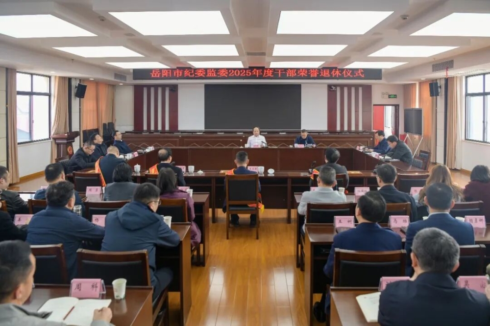 3月12日上午,岳阳市纪委监委机关举行2025年度干部荣誉退休仪式。市委常委、市纪委书记、市监委主任谢运策为退休干部颁发荣誉退休纪念章并讲话。
